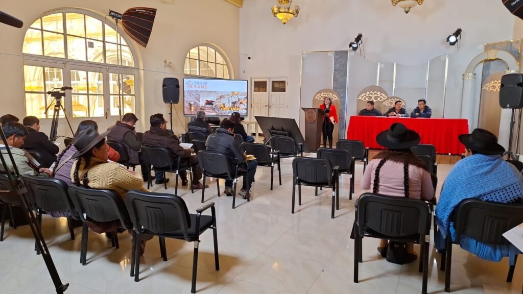 Potosí 31 de enero de 2024.- La mañana de hoy miércoles se ha realizado la socialización del Proyecto Minero Silver Sand en la Asamblea Legislativa de Potosí, con la participación de asambleístas de ese departamento y representantes de organizaciones sociales.
